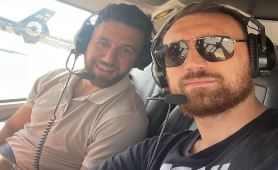 Οι δύο Σέρβοι μπασκετμπολίστες χρησιμοποίησαν ελικόπτερο για να προσγειωθούν στο ελληνικό νησί και δεν παρέλειψαν να απαθανατίσουν τη στιγμή, με τον άλλοτε σέντερ του Ολυμπιακού να αναρτά τη σχετική φωτογραφία στο Instagram.