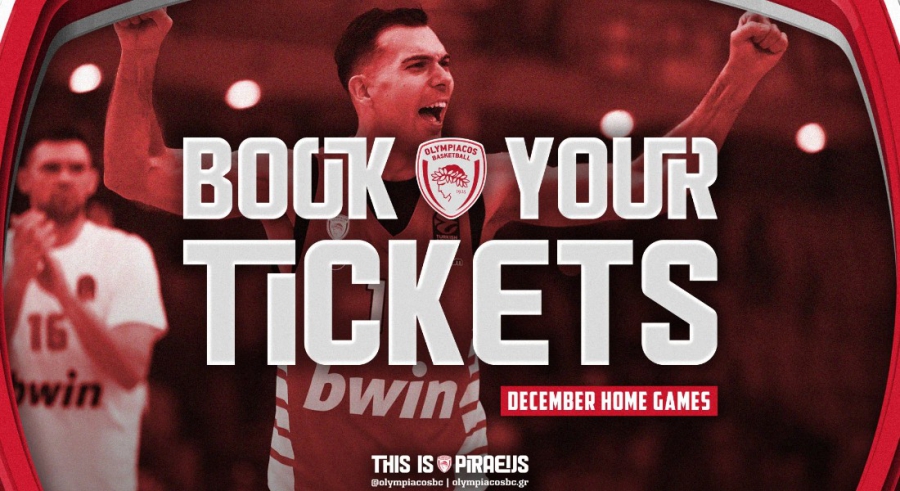 Για την καλύτερη εξυπηρέτηση και προγραμματισμό των φιλάθλων, η Κ.Α.Ε. ΟΛΥΜΠΙΑΚΟΣ ανακοινώνει ότι την Παρασκευή 25/11/2022 και ώρα 12:00 θα ξεκινήσει η διάθεση εισιτηρίων για τους Ευρωπαϊκούς Αγώνες της Κανονικής Περιόδου της Turkish Airlines Euroleague καθώς επίσης και για τον Αγώνα του Ελληνικού Πρωταθλήματος BASKETLEAGUE 2022/2023 με τον ΠΑΝΑΘΗΝΑΪΚΟ για τον μήνα ΔΕΚΕΜΒΡΙΟ.