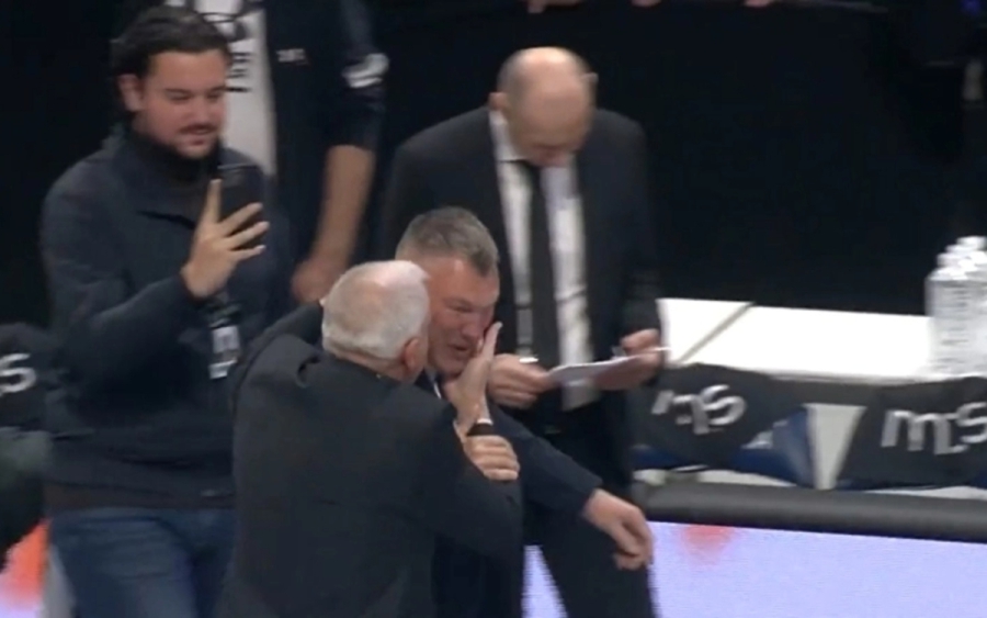 Τρομερή στιγμή πριν την έναρξη του αγώνα της Παρτιζάν με την Μπαρτσελόνα, με τον Ζέλικο Ομπράντοβιτς να παίρνει αγκαλιά και να φιλάει τον Σάρας Γιασικεβίτσιους!