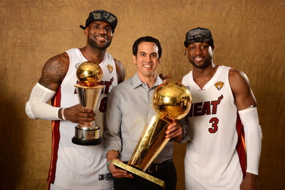 Ο νεαρός προπονητής βρέθηκε πολύ γρήγορα να κοουτσάρει τον Ντουέιν Γουέιντ, τον οποίο μάλιστα είχε βοηθήσει στο να βελτιώσει το σουτ του μέσης απόστασης, και τον Λεμπρόν Τζέιμς οδηγώντας τους Χιτ στα back to back πρωταθλήματα το 2012 και το 2013.