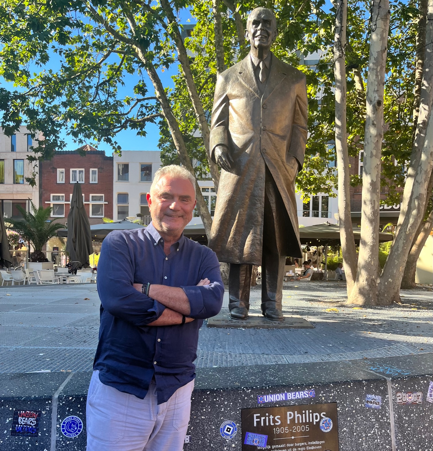Περπατώντας στο κέντρο του Αϊντχόβεν, συνειδητοποίησα ότι από την πρώτη φορά που ήρθα σε αυτήν την πόλη, στον ημιτελικό του Κυπέλλου Πρωταθλητριών Ευρώπης το 1988, όταν η PSV απέκλεισε στα εκτός έδρας γκολ την Ρεάλ Μαδρίτης, πέρασαν 35 χρόνια αλλά ένα πράγμα δεν αλλάζει στο Markt: το άγαλμα του Φριτς Φίλιπς, του αναμορφωτή, όχι μόνο της ομάδας, αλλά και ολόκληρης της πόλης! Απλά στην αρχή έγραφε μόνο το όνομά του και το 1999 προστέθηκε πως είχε ψηφιστεί ως ο επιχειρηματίας του αιώνα, ενώ μετά τον θάνατο του το 2005, όταν είχε συμπληρώσει τα 100 του χρόνια, αναγράφονται οι ημερομηνίες! Και σε όλη την πόλη βλέπεις παντού το Philips…