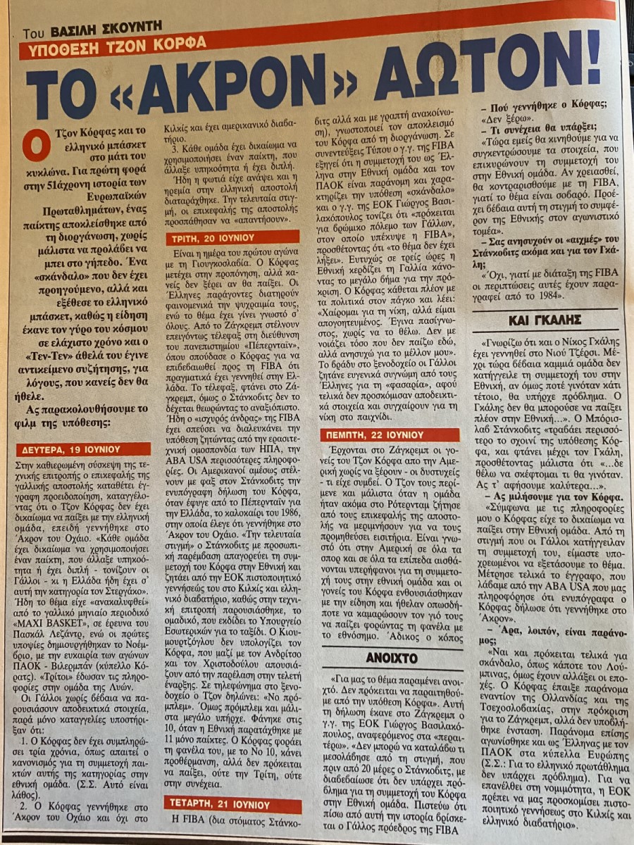 Δείτε το αποκαλυπτικό ρεπορτάζ από το περιοδικό "Τρίποντο" τον Ιούνιο του 1989.