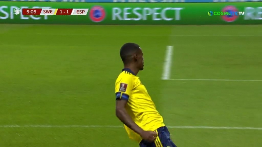 Ένα λάθος της άμυνας των Ισπανών εκμεταλλεύτηκε ο Αλεξάντερ Ισάκ, ο οποίος με ένα άπιαστο σουτ ισοφάρισε το παιχνίδι σε 1-1 στο 6ο λεπτό.