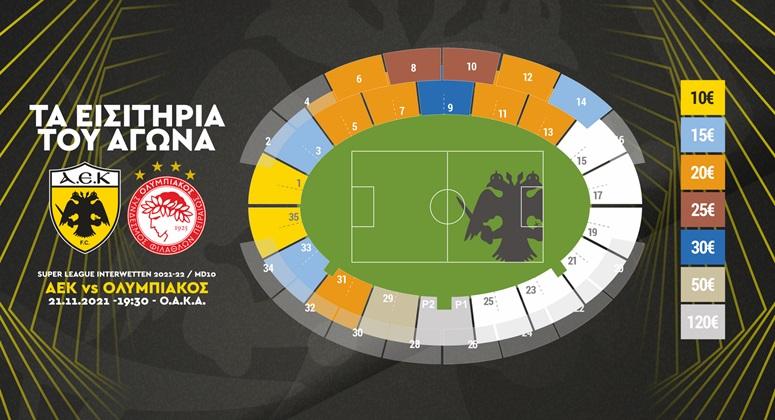 Η ΠΑΕ ΑΕΚ ενημερώνει τους φιλάθλους της ότι έχει ήδη τεθεί σε λειτουργία το ηλεκτρονικό εισιτήριο για τον αγώνα του πρωταθλήματος Super League Interwetten 2021-22, ΑΕΚ – Ολυμπιακός, την Κυριακή 21/11 στις 19:30 και λειτουργεί από την επίσημη ιστοσελίδα μας, www.aekfc.gr, όλο το 24ωρο.
