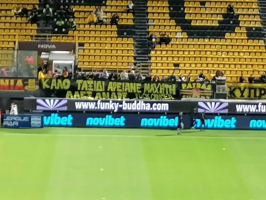 Οι φίλοι των «κιτρινόμαυρων» δεν θα μπορούσαν να ξεχάσουν τον σπουδαίο αθλητή, άνθρωπο και συνοπαδό τους, τον οποίο αποχαιρέτησαν με ένα πανό που έγραφε: «Καλό ταξίδι Αρειανέ μαχητή Αλέξανδρε».