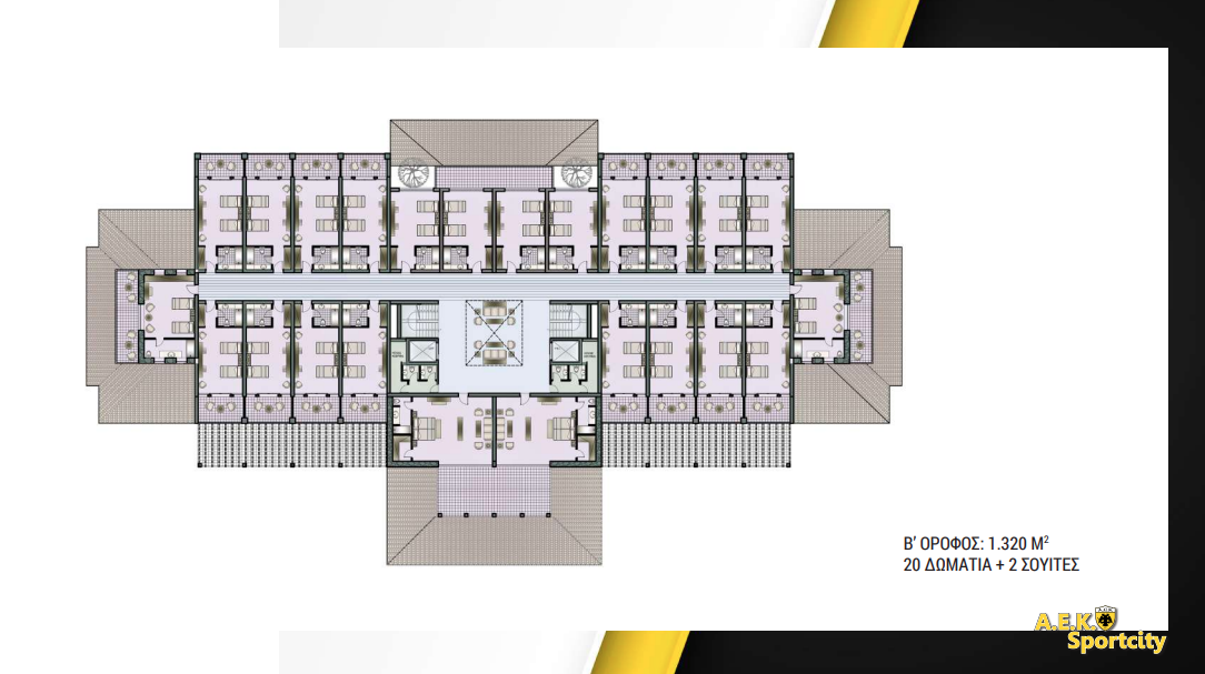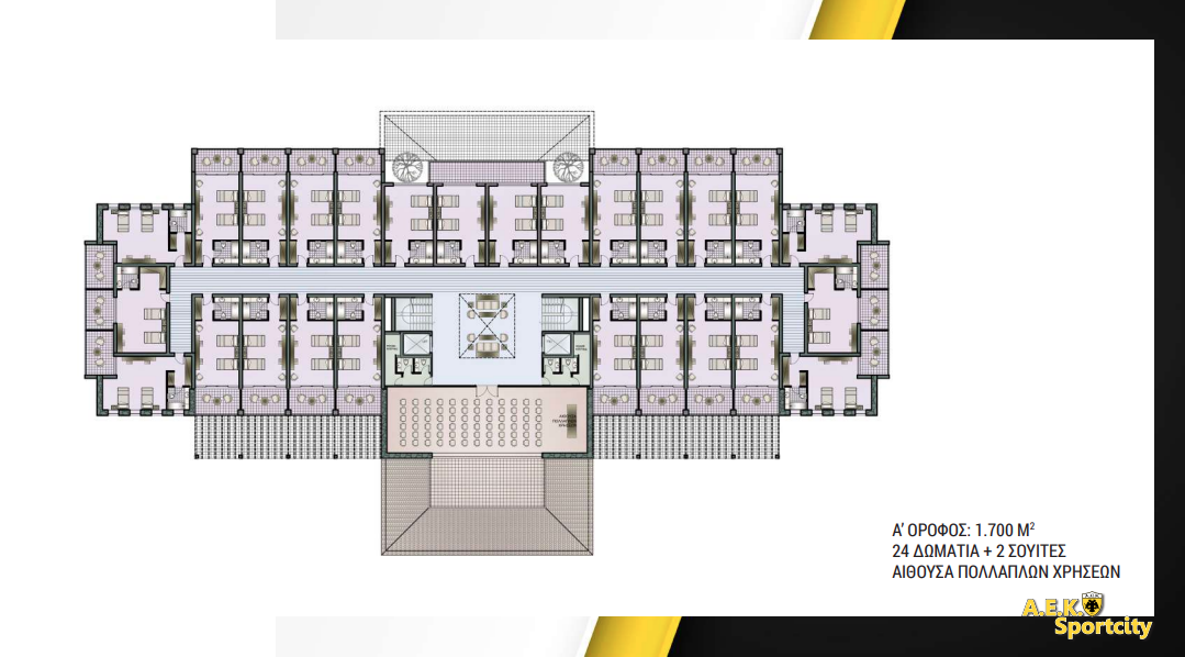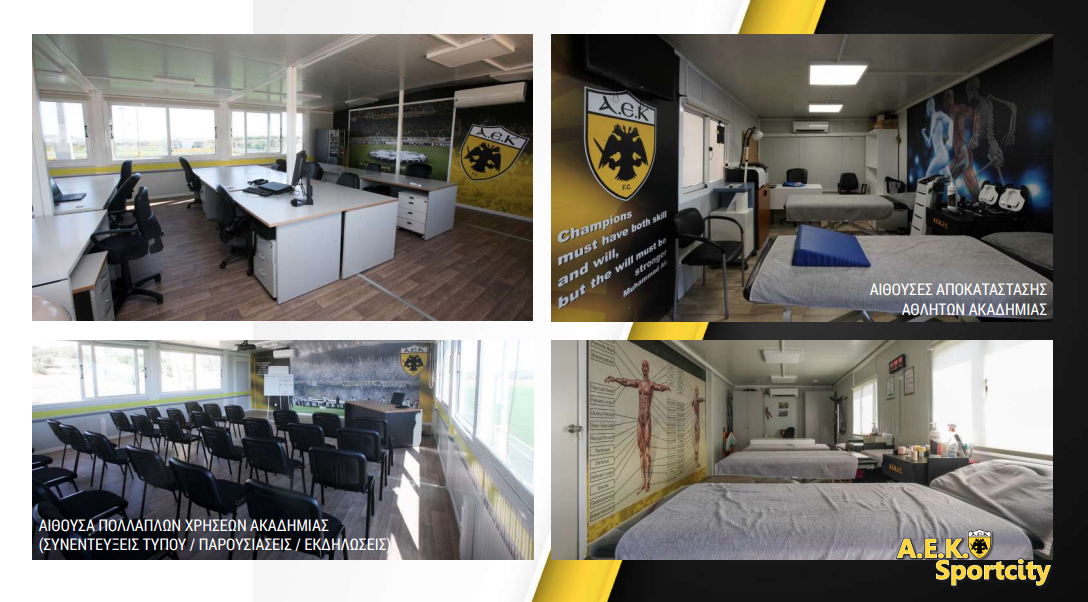 Όλος ο πρώτος όροφος θα είναι για τα παιδιά των ακαδημιών και μια αίθουσα πολλαπλών χρήσεων. . Ο δεύτερος όροφος με 20 δωμάτια και δύο σουίτες θα είναι για την πρώτη ομάδα. Είναι το καινούργιο στοίχημα. Πιστεύω ότι θα το κερδίσουμε. Μόνο έτσι η ΑΕΚ μπορεί να μεγαλώσει. Έτυχε να το παρουσιάσουμε σε μια όμορφη εποχή έχοντας κατακτήσει δύο τρόπαια. Το πιστεύω πολύ αυτό το project και να είστε σίγουροι ότι κι αυτό θα υλοποιηθεί».