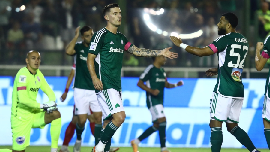Διπλασιασμό στο προβάδισμα του Παναθηναϊκού πραγματοποίησε ο Μπέντζαμιν Βέρμπιτς να εκτελεί το αντίπαλο τέρμα και τον Δεληγιαννίδη να... βοηθάει στην ολοκλήρωση της αποστολής.