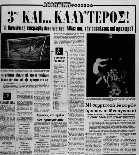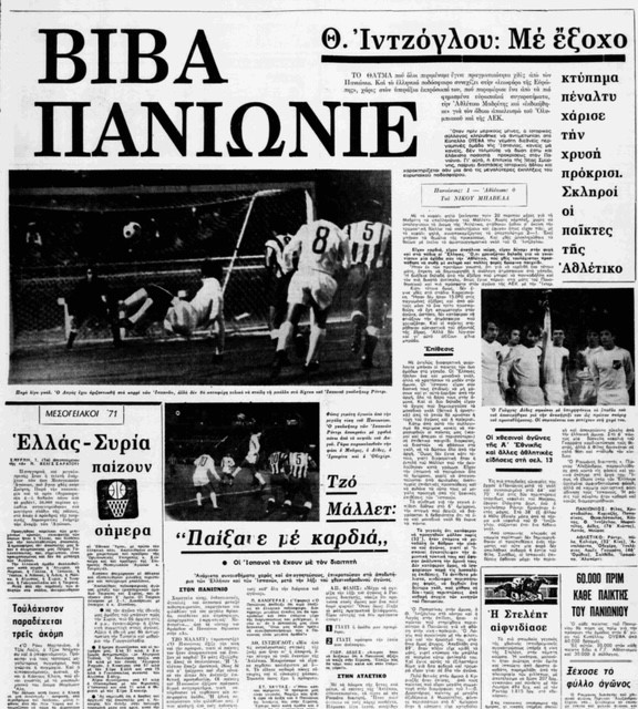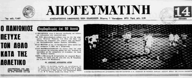 Έτρεχε ακόμα μισό αιώνα πριν το «annus mirabilis» για το ελληνικό ποδόσφαιρο, το 1971 με τη συμμετοχή του Παναθηναϊκού στον τελικό του Κυπέλλου πρωταθλητριών και με τα δάκρυα ενός ανείπωτου ονείρου που πήρε σάρκα και οστά να έχουν ποτίσει τους πάντες, ο Πανιώνιος έκανε το δικό του θαύμα. Και τότε 6 Οκτωβρίου ήταν όταν η Πλατεία μεταμορφώθηκε σε… μεθυσμένη πολιτεία, τη νύχτα που ο Πανιώνιος απέκλεισε την Ατλέτικο Μαδρίτης στο Κύπελλο UEFA.