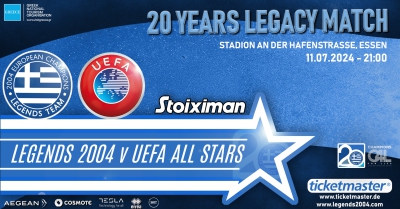 Όλα όσα πρέπει να γνωρίζετε για τον επετειακό αγώνα των Legends 2004 απέναντι στους UEFA All Stars 08/07/2024 - 10:54 - TV or not TV