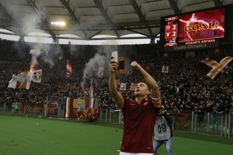 Η Ρόμα έκανε το 2-2 και ο Τότι έτρεξε να πανηγυρίσει με τους οπαδούς στην κερκίδα, ενώ πίσω του τον «κυνήγαγε» ολόκληρη η ομάδα. Ο Capitano, οι παίκτες και όλοι η φίλαθλοι στο «Στάδιο Ολίμπικο» έγιναν ένα. Για να αποθανατίσει αυτήν την μοναδική στιγμή ο Τότι πήρε το κινητό του από ένα μέλος του προπονητικού team και έβγαλε μία selfie μπροστά από την κερκίδα, η οποία «παραληρούσε» φωνάζοντας ρυθμικά το όνομα του.