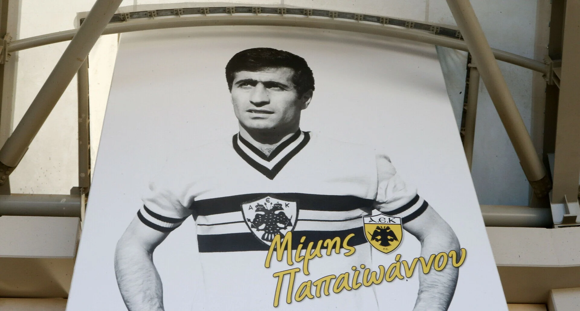 Άλλωστε, στο νέο γήπεδο της ΑΕΚ στη Νέα Φιλαδέλφεια, η μορφή του κοσμεί έναν από τους τέσσερεις πυλώνες του. Κίνηση συμβολική, προς τους ισάριθμους ποδοσφαιρικούς γίγαντες (Νεστορίδης, Σεραφείδης, Παπαϊωάννου, Μαύρος) που σήκωσαν στους ώμους τους, ένα μεγάλο μέρος της ιστορίας τόσο του συλλόγου, όσο και του ελληνικού ποδοσφαίρου.