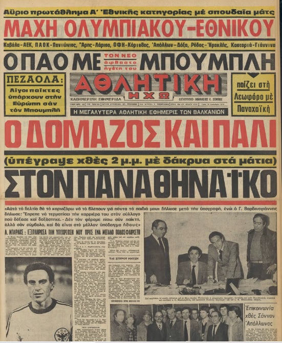 Χριστούγεννα 1979. Ο Μίμης Δομάζος αφήνει την ΑΕΚ με τις… ευλογίες του Λουκά Μπάρλου και επιστρέφει στον Παναθηναϊκό, για να κλείσει την τεράστια καριέρα του, στα χρώματα που την ξεκίνησε!
