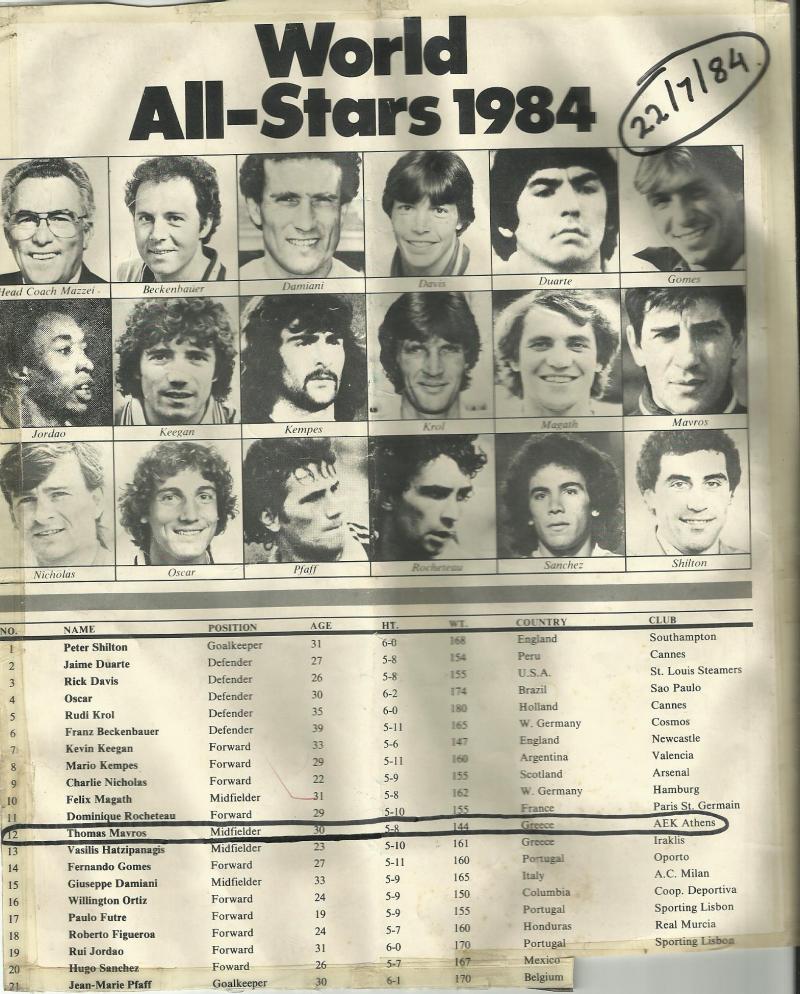 Κατά αυτόν τον τρόπο, ο πρώτος σκόρερ στην ιστορία του ελληνικού πρωταθλήματος με 261 γκολ και ο μεγαλύτερος αρτίστας που πάτησε ποτέ ελληνικό χορτάρι, βρέθηκαν πλάι σε μύθους του παγκοσμίου ποδοσφαίρου. Τόσο για το 1984, όσο και για σήμερα.