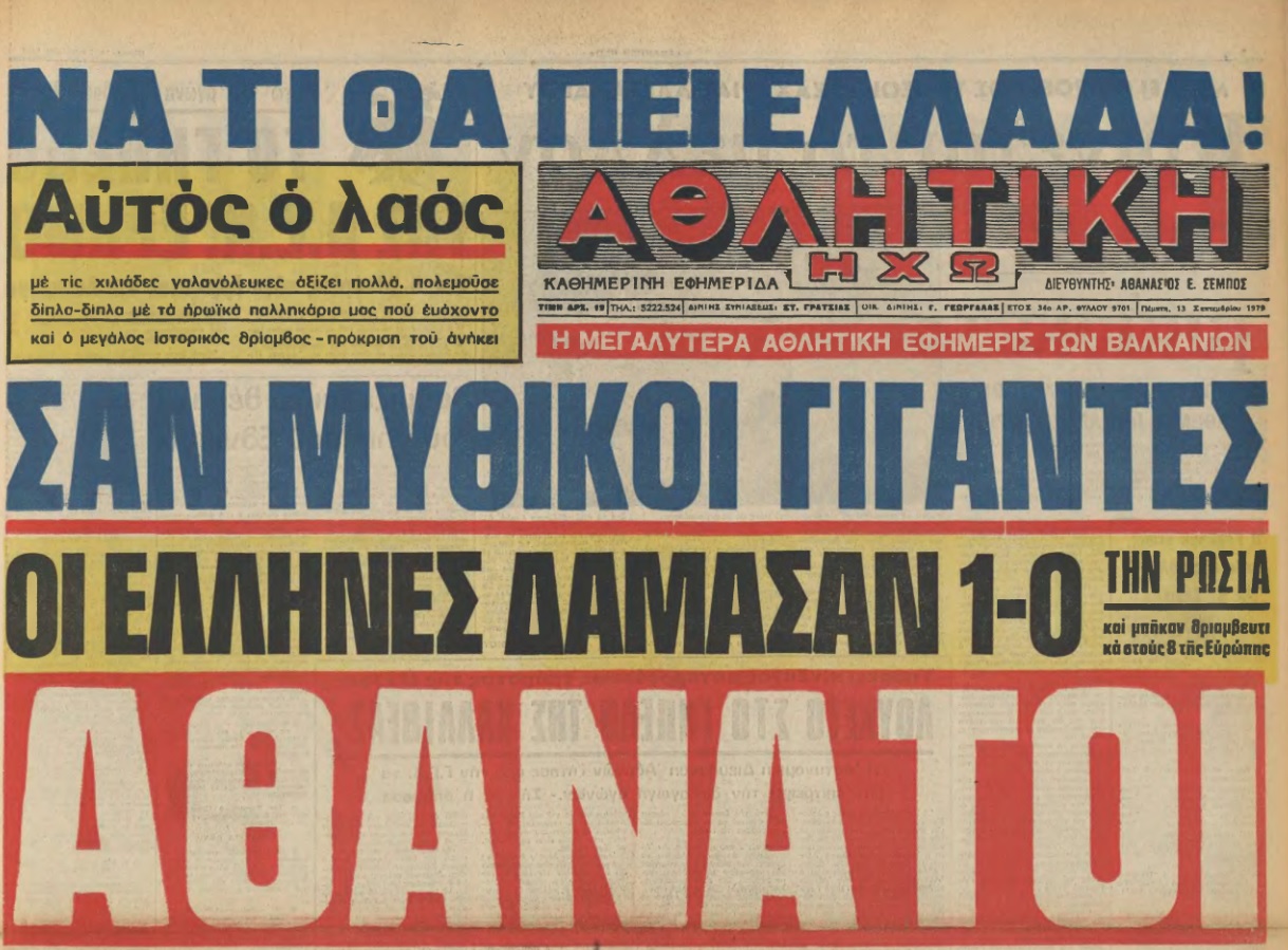 12 Σεπτεμβρίου 1979: Η πρώτη πρόκριση στην ιστορία της Εθνικής Ελλάδας σε μεγάλη διοργάνωση ήρθε πριν ακριβώς 44 χρόνια και το BN Sports καταγράφει τα όσα συνέβησαν πριν και κατά τη διάρκεια του νικηφόρου ματς (1-0) με τη Σοβιετική Ένωση στη Λεωφόρο Αλεξάνδρας.