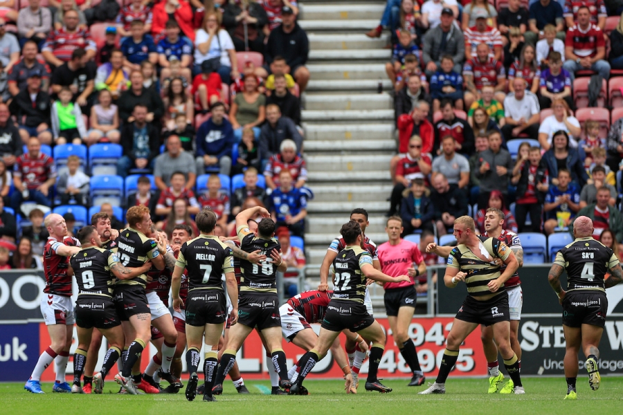Σε πεδίο μάχης μετατράπηκε ο αγωνιστικός χώρος του DW Stadium, στην αναμέτρηση της Wigan απέναντι στην Leigh, με τους Τζακ Ασγουόρθ και Μπραντ Σίνγκλετον να «πιάνονται στα χέρια» και να αποβάλλονται!